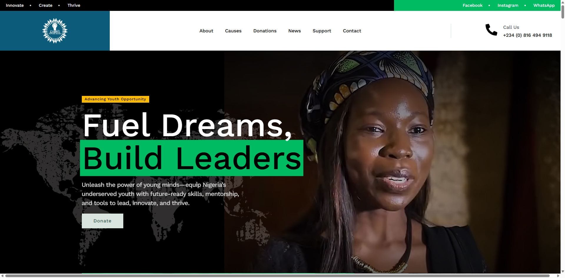 - Clean navigation for donors, partners, youth, and stakeholders